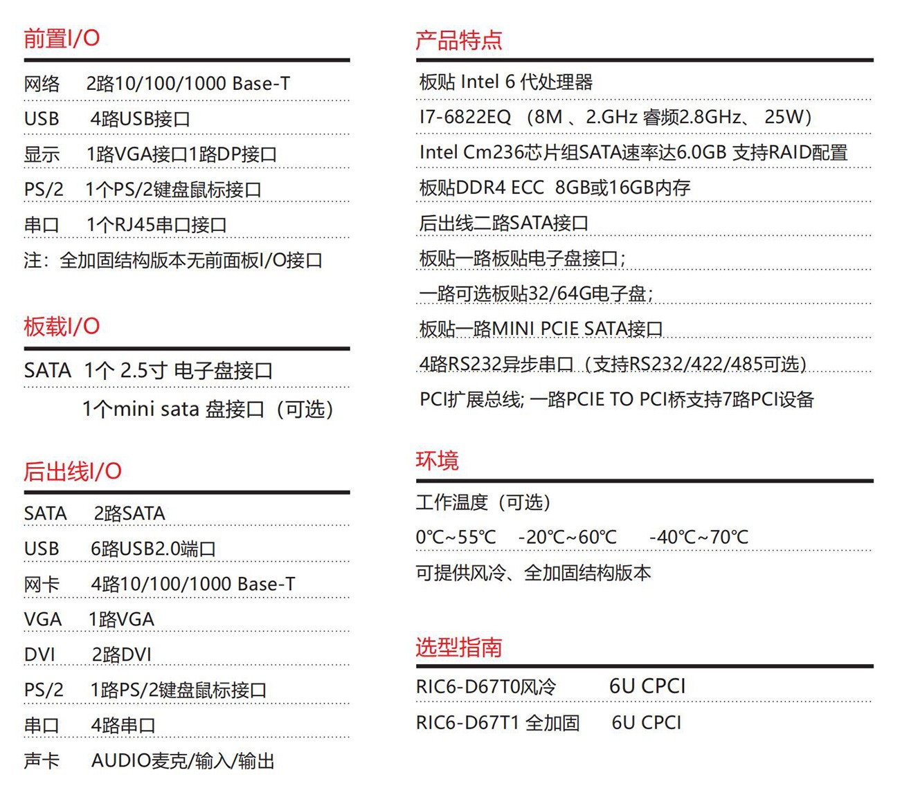 采用Intel? 六代處理器設(shè)計方案,CompactPCI 6U 架構(gòu) 符合 PICMG2.0 R3.0、PICMG2.16、PICMG2.3標準和海軍標主板標準。具備豐富的外圍接口;設(shè)計了高效的散熱系統(tǒng),可顯著提高處理器的浮點運算性能,以太網(wǎng)、PCIe to PCI擴展總線, 滿足視頻采集與處理、雷達和聲吶等應(yīng)用對高速數(shù)據(jù)傳輸?shù)囊?。專為惡劣環(huán)境使用而設(shè)計,滿足無人機、裝甲車、水面艦 艇等軍工領(lǐng)域。