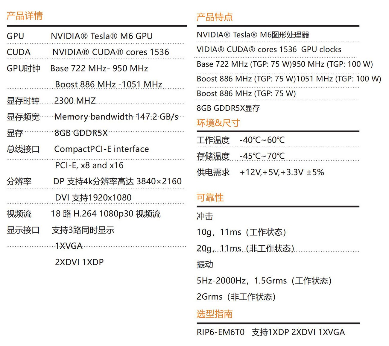 一款CPCI-E發(fā)燒級獨立顯卡,采用NVIDIA? Tesla? M6 圖形加速器 芯 片 設 計 , NVIDIA? Tesla? M6 GPU Memory clock 2300 MHz為 256Bit 8GB GDDR5顯 存 ; 具 有 出 色 多 顯 示 輸 出 接 口 、 NVIDIA? Tesla? M6 GPU 加速器針對刀片式服務器進行了優(yōu)化,能 為數(shù)據(jù)中心的虛擬工作站、桌面和應用程序提供高性能圖形。該加速器 與 NVIDIA GRID? 軟件無縫地配合工作 ,可使企業(yè)虛擬化包括專業(yè)圖形 應用程序在內(nèi)的眾多應用程序,并將這些應用程序傳輸?shù)皆O備中,該產(chǎn)品有良好計算和圖形性能。